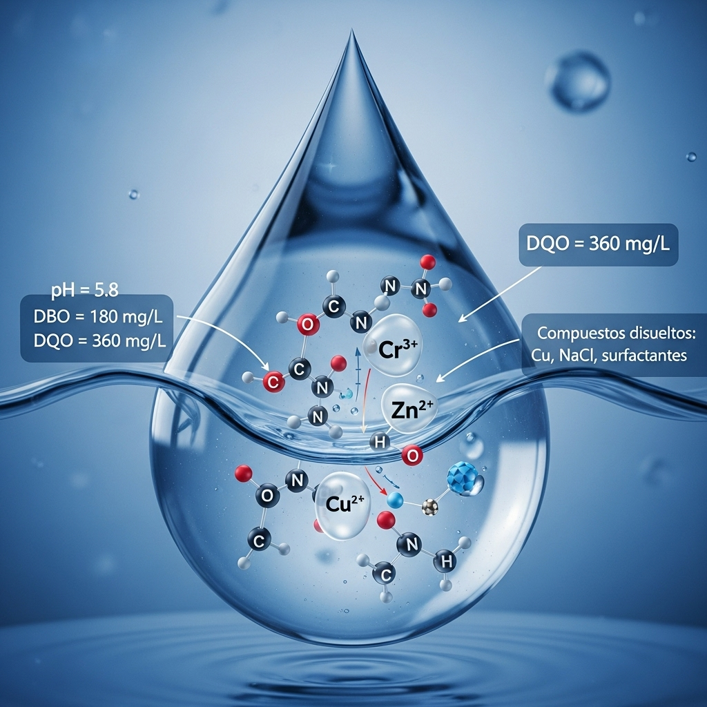 La composición del jarabe o agua residual de la curtiembre varía significativamente según el tipo de curtido, pero en términos generales, incluye: